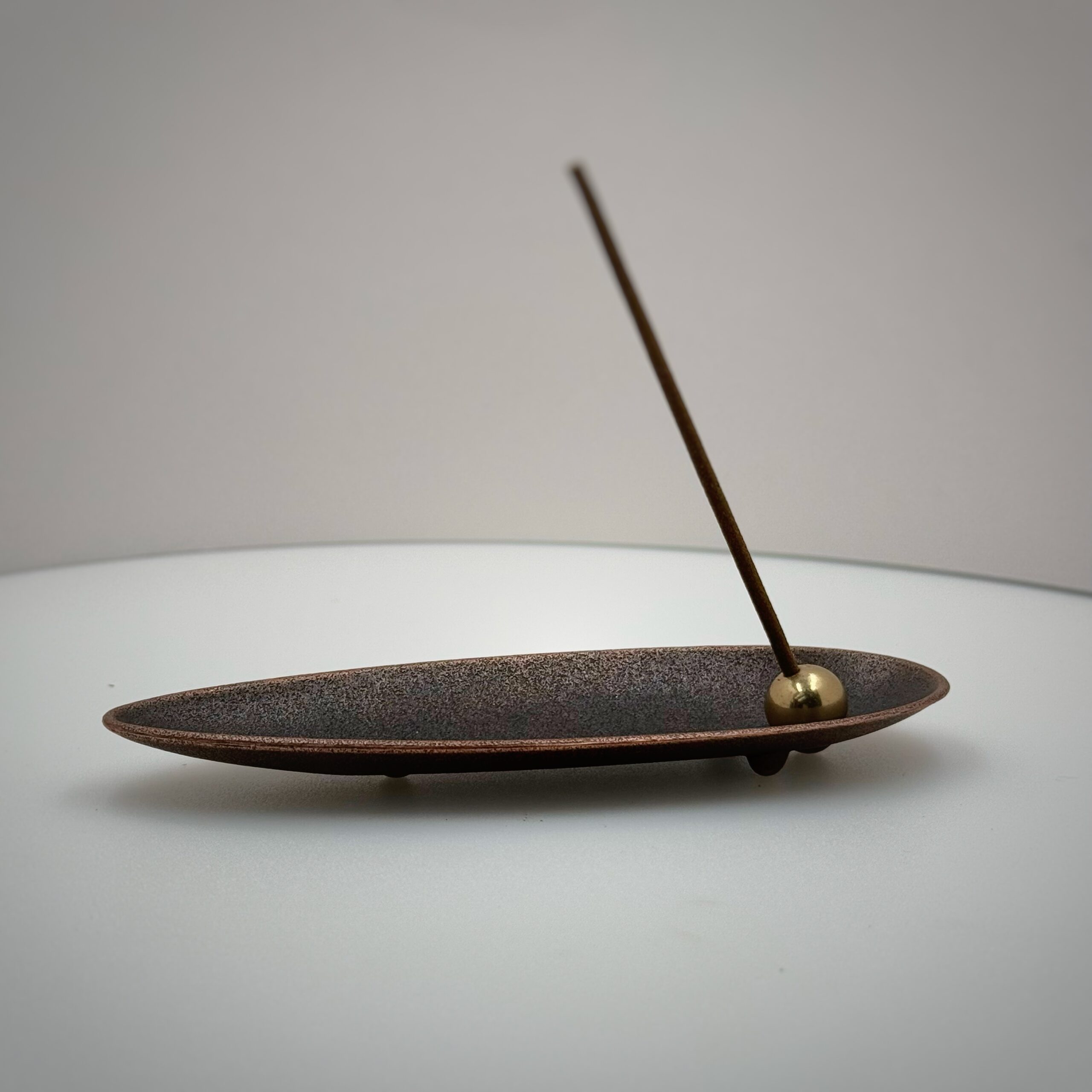 Ta minimalistyczna podstawka do kadzideł zachwyca swoją prostotą i surowym pięknem. Jej subtelny brązowy odcień z drobnymi refleksami emanuje naturalnym ciepłem, a złoty akcent nadaje jej wyjątkowego charakteru. Idealnie wpisuje się w styl zen, wnosząc do wnętrza spokój i harmonię.