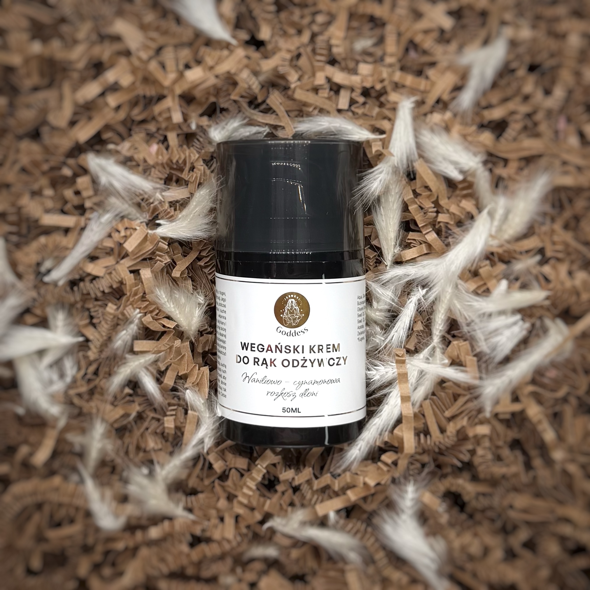 Poczuj, jak Twoje dłonie otulane są ciepłem i komfortem z każdym zastosowaniem naszego kremu do rąk. Dzięki olejowi abisyńskiemu, maceratowi z arniki i witaminie E Twoje dłonie natychmiast odzyskują gładkość i ukojenie. Bogata formuła z masłem shea i gliceryną działa jak ochronny kokon, nawilżając i wzmacniając naturalną barierę skóry, a lekki zapach wanilii i cynamonu przywodzi na myśl chwile pełne spokoju i domowego ciepła.